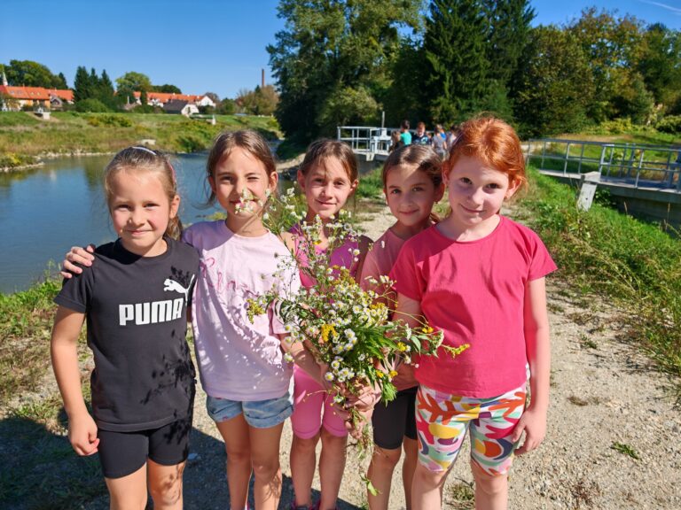 Hét elején az őszi napsugarak kicsalogatták a 2. b osztályosokat a vízpartra. A lányok csokrot kötöttek vadvirágokból tanító nénijüknek. A fiúk célbadobó versenyt rendeztek. Az