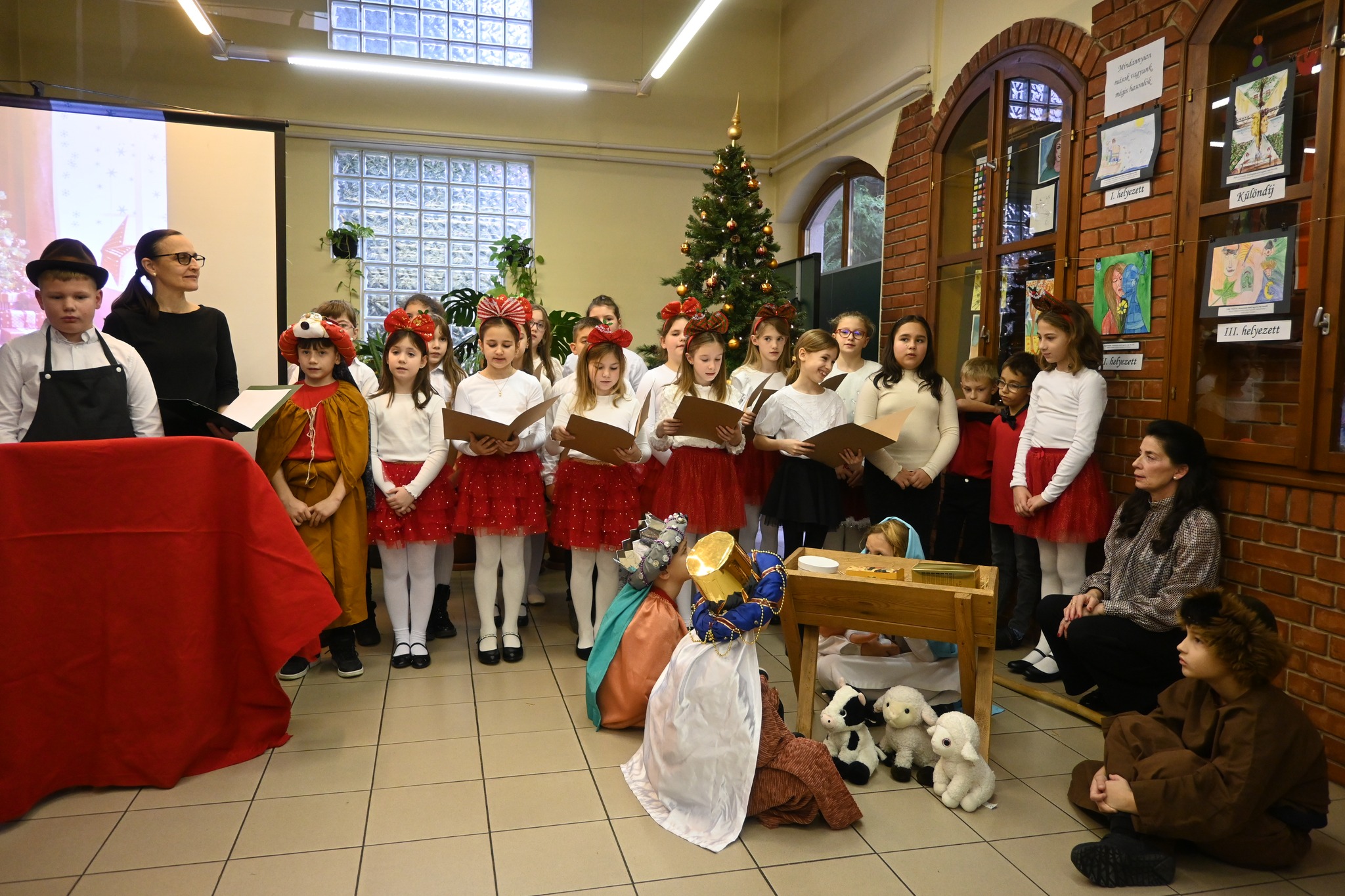 A 3. b osztályos tanulók és iskolánk énekkara meghitt karácsonyi műsorral szereztek örömet a Rábaparti Integrált Szociális Intézmény lakóinak. A gyermekek versekkel, dalokkal és betlehemes jelenettel idézték meg az ünnep hangulatát, mosolyt és könnyeket csalva a közönség arcára.