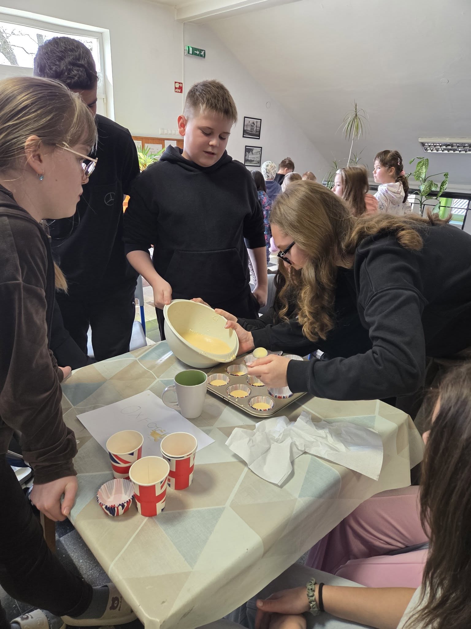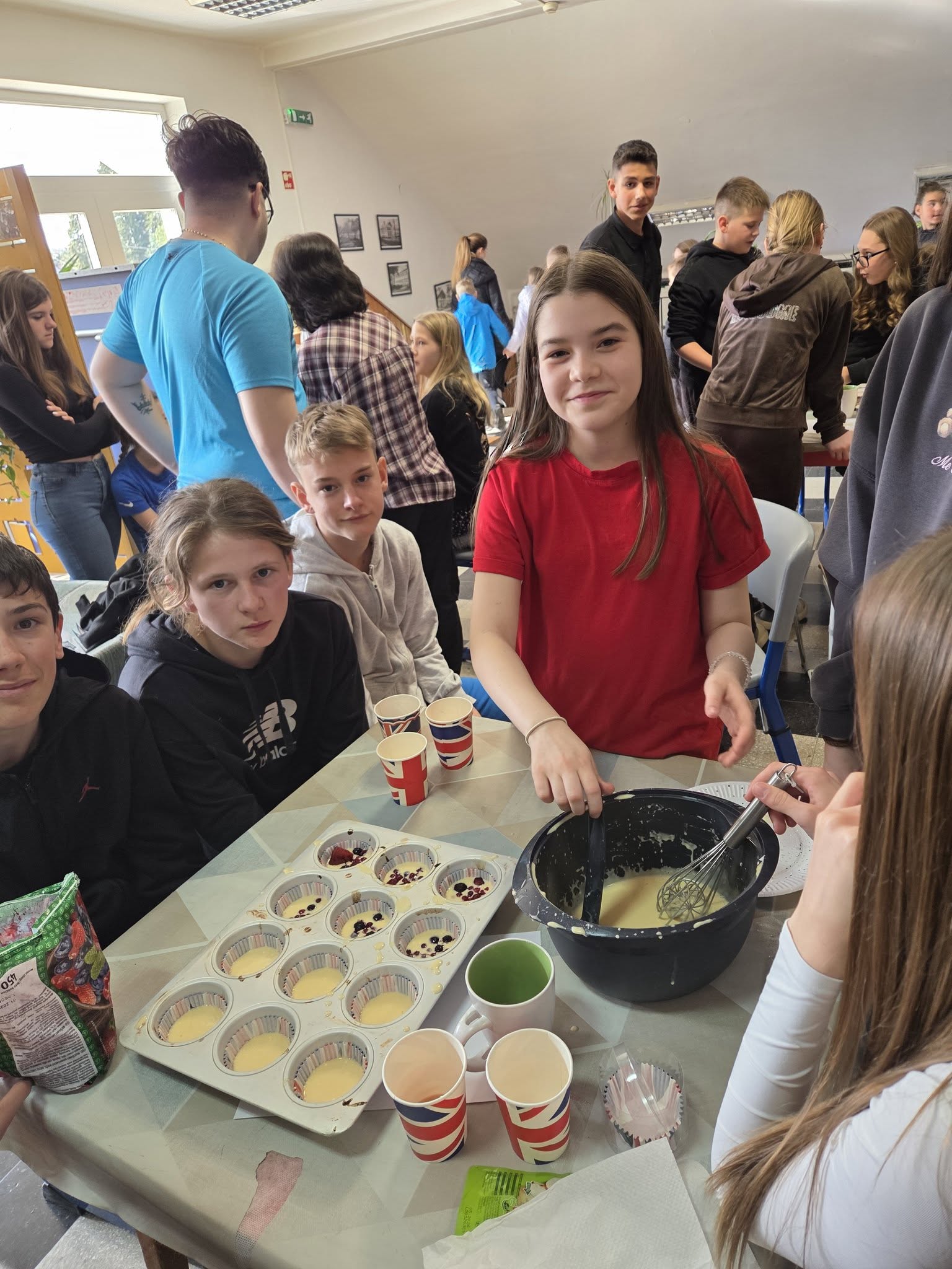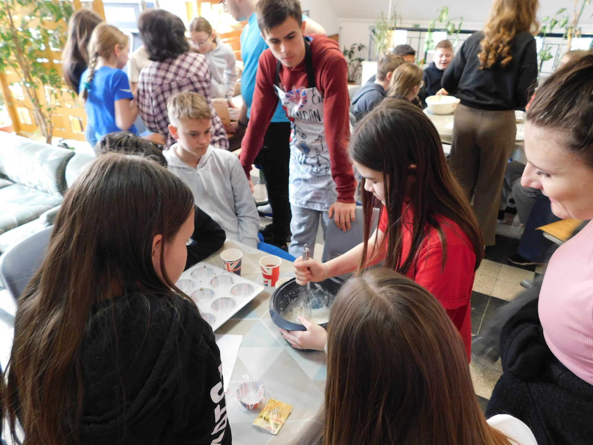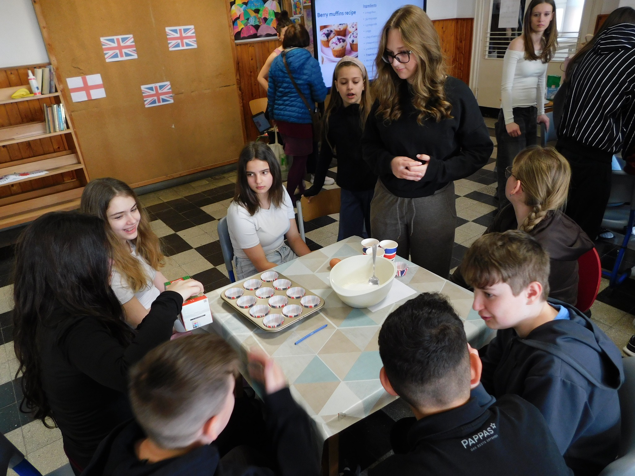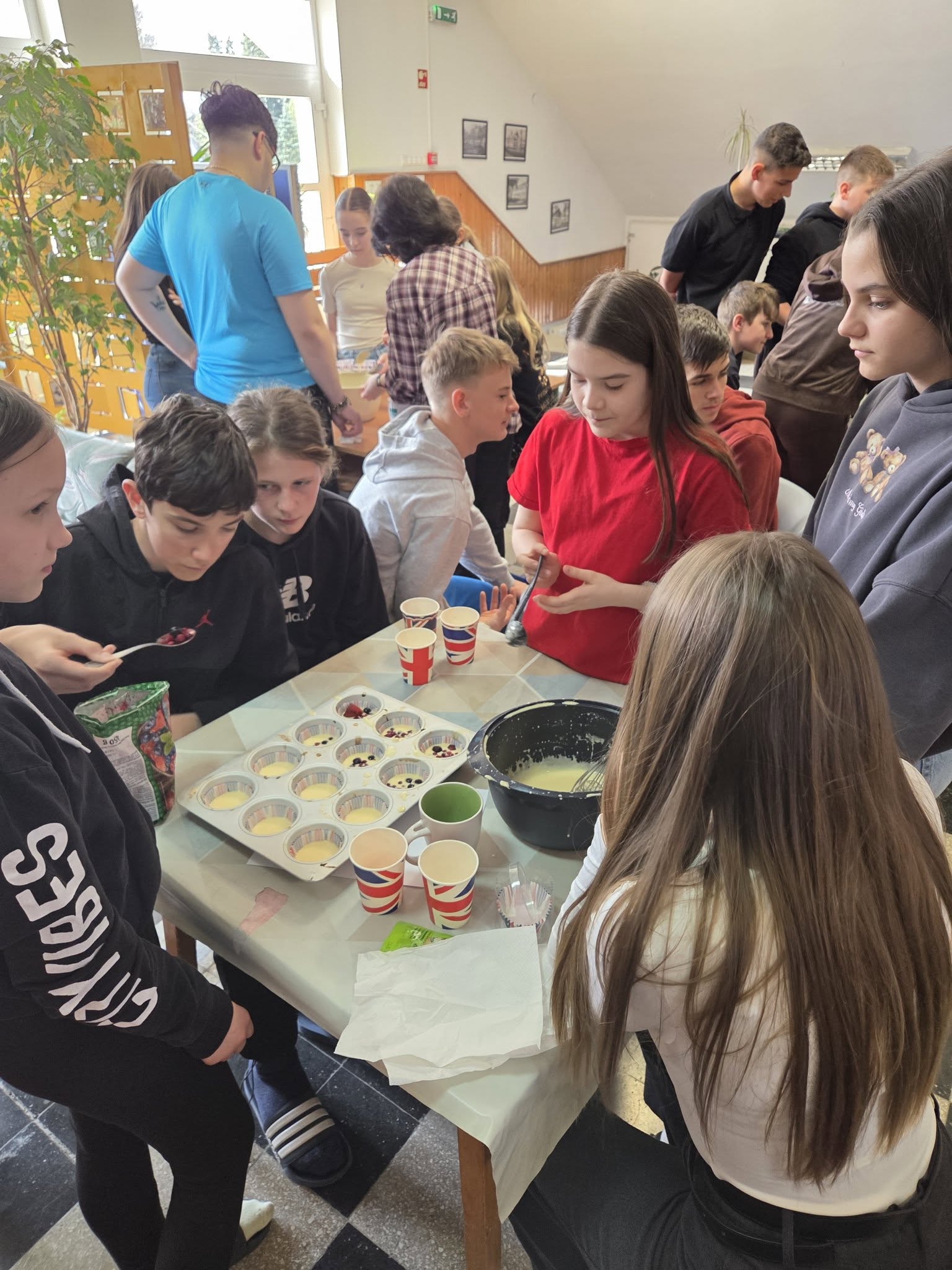 Március 18-án iskolánk felső tagozatos diákjai számára angol projektnapot szerveztünk az angol kultúra jegyében. A délelőtt során tanulóink jobban megismerkedhettek Anglia fontos látnivalóival, híres íróival és költőivel, valamint jellegzetes angol ételekkel is. Teával a 8. osztályosok készültek, de a bátrabbak egy tradicionális brit ételt, a beans on toast-ot is megkóstolhatták. A program zárásaként diákjaink gyümölcsös muffint készítettek.