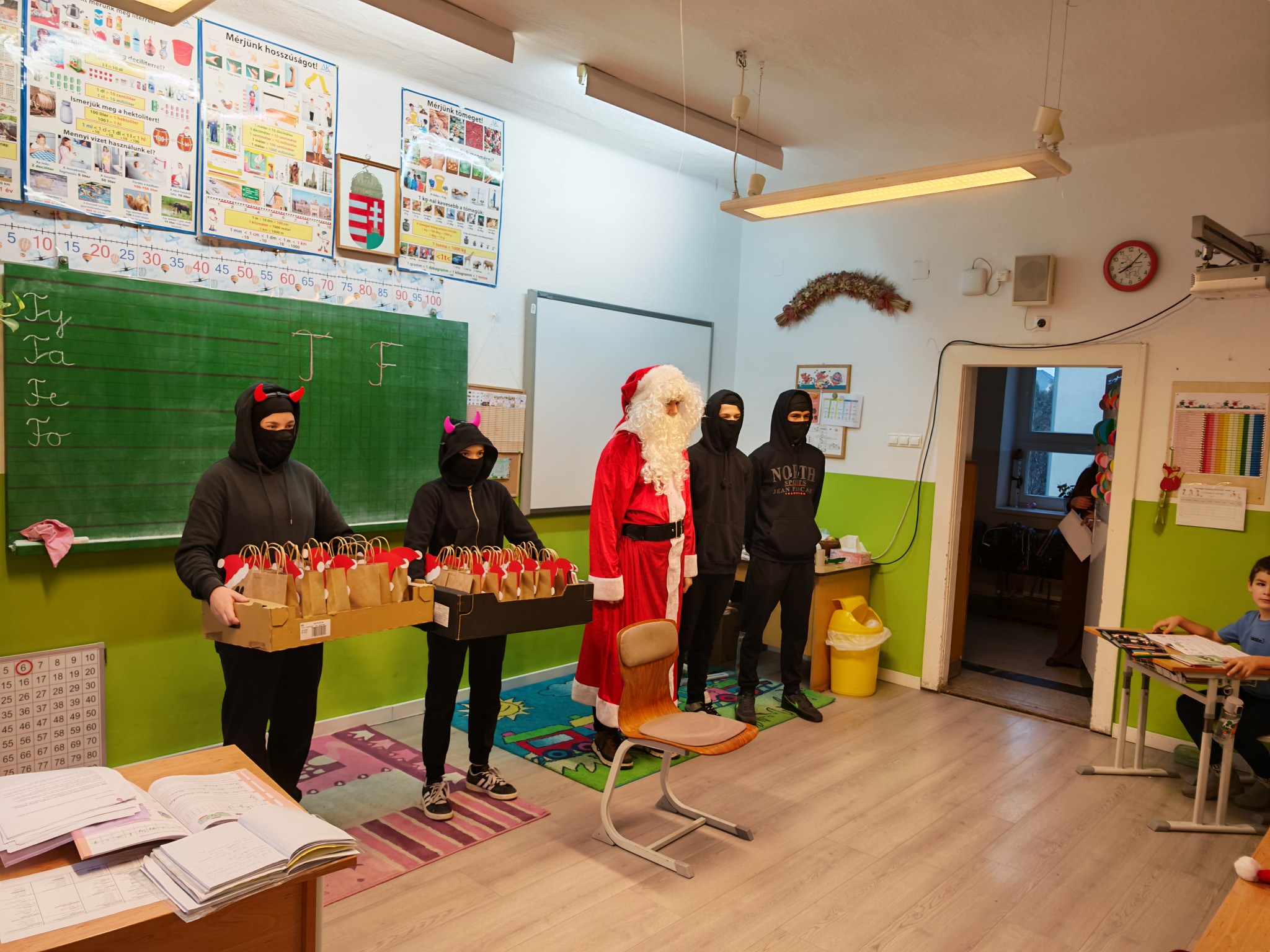 Nagy örömet szerzett kicsiknek és nagyoknak egyaránt: minden osztályt meglátogatott, beszélgetett a gyerekekkel, és természetesen mindenki kapott ajándékot!