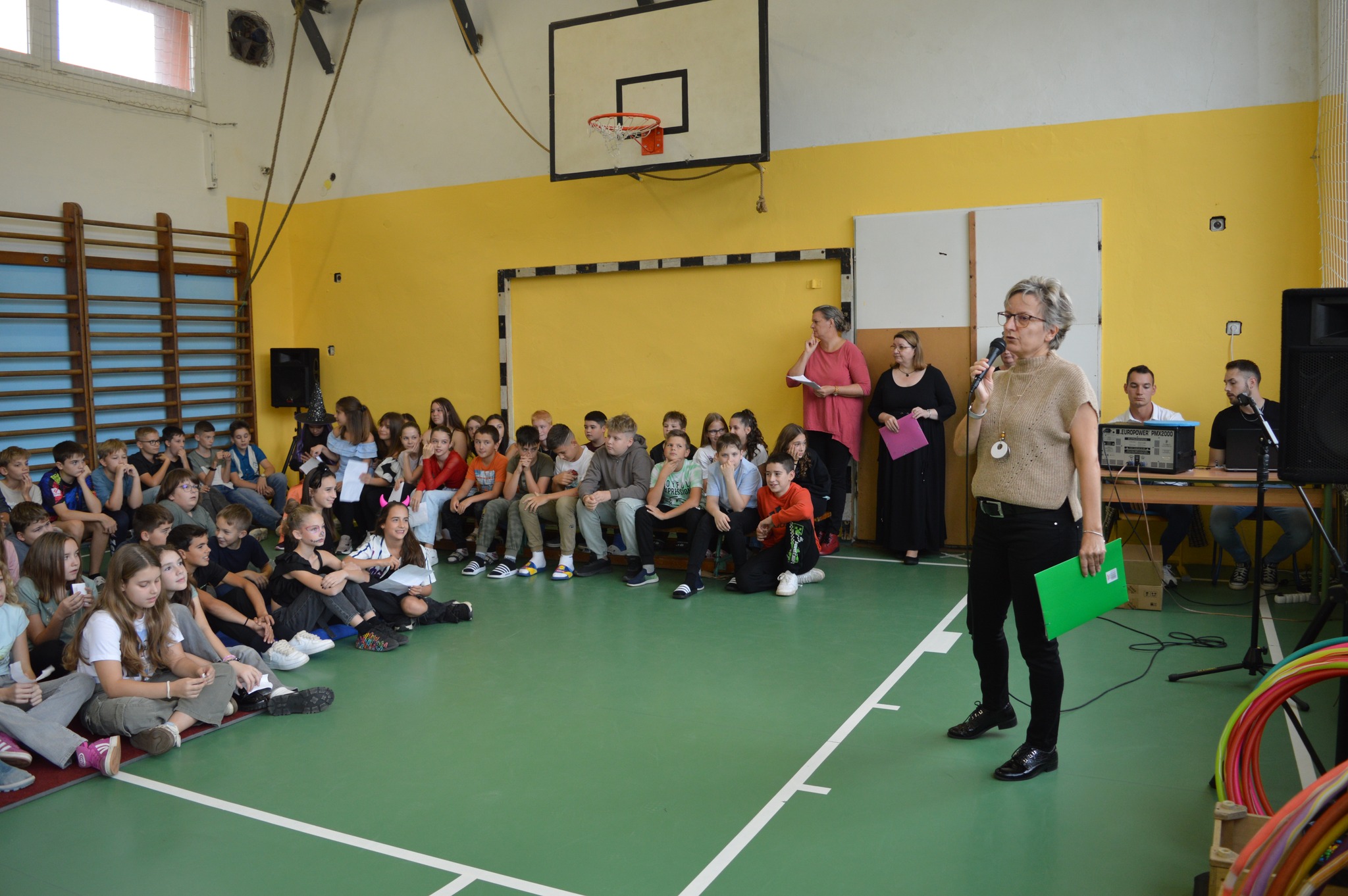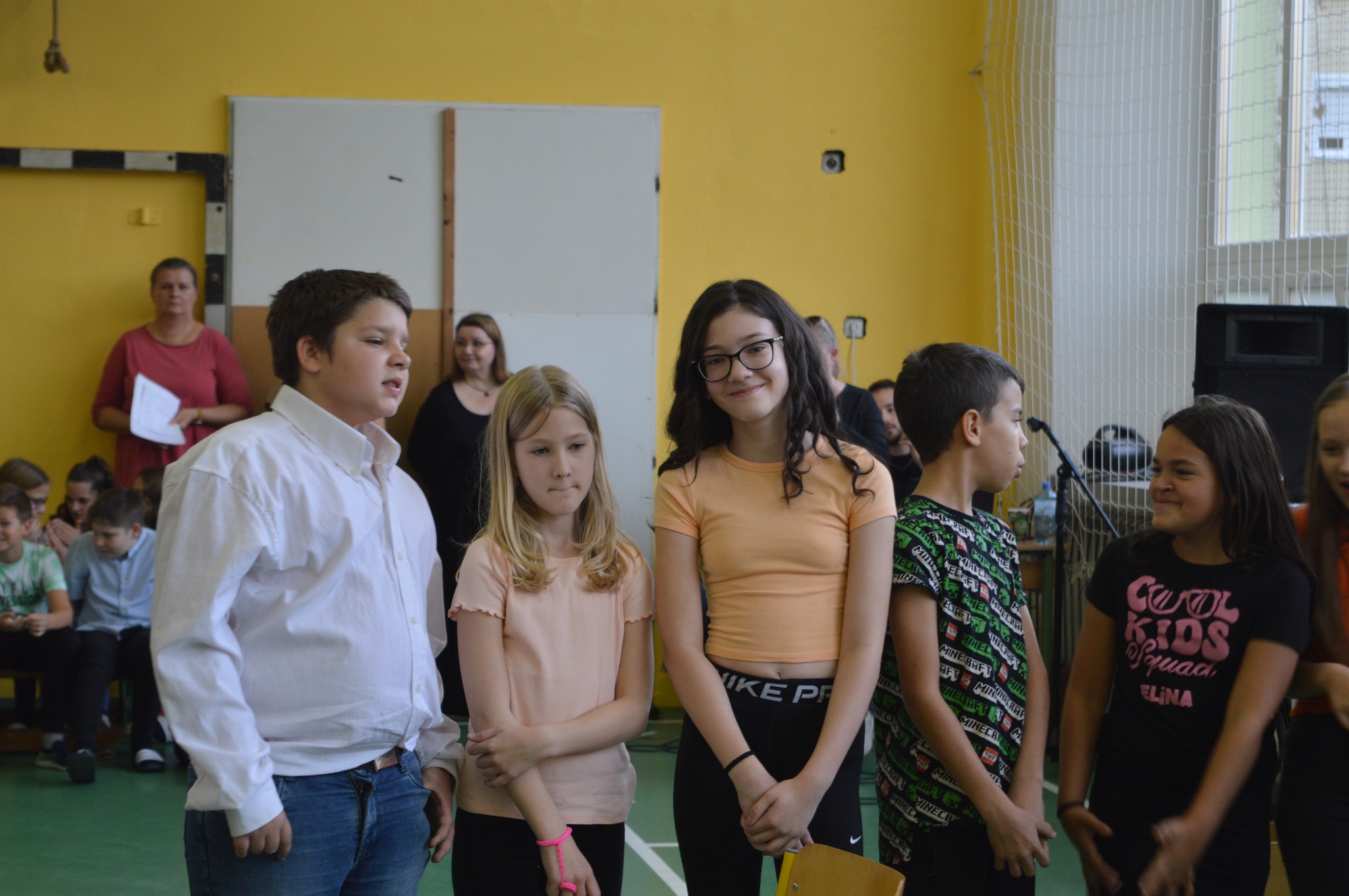 A délután különleges pillanata volt, amikor színpadra szólítottuk újonnan érkezett kollégáinkat, akik szeptember óta erősítik iskolánk tantestületét. Ők is örömmel vállalták a rájuk szabott „Aranyos” kihívásokat – vidámságukkal és nyitottságukkal pillanatok alatt belopták magukat a közösség szívébe.