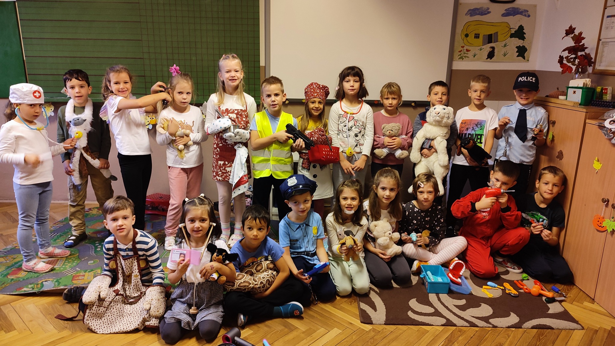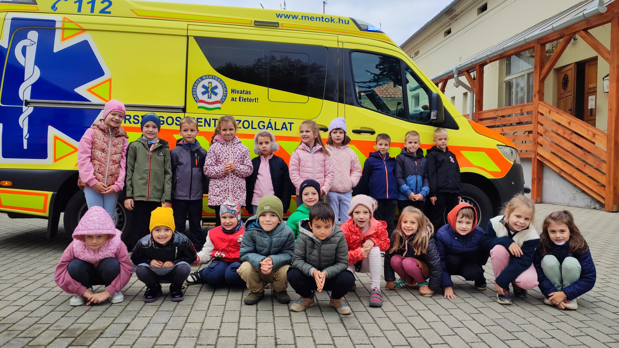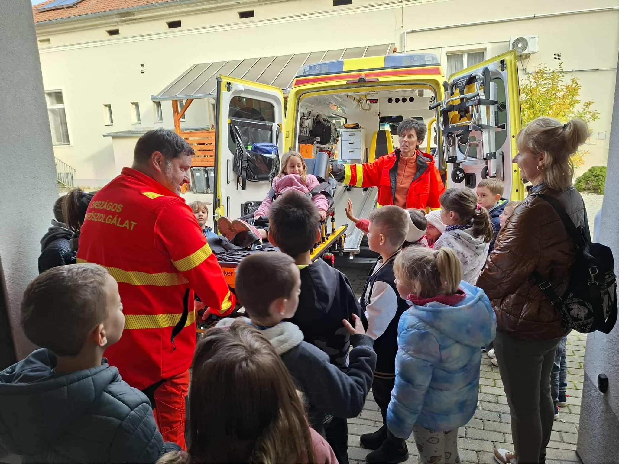 Az elsősök jelmezekbe öltözve játszva tanulták meg, mivel foglalkoznak a különböző szakemberek, majd ellátogattak a mentőállomásra, ahol testközelből láthatták a mentőautót.