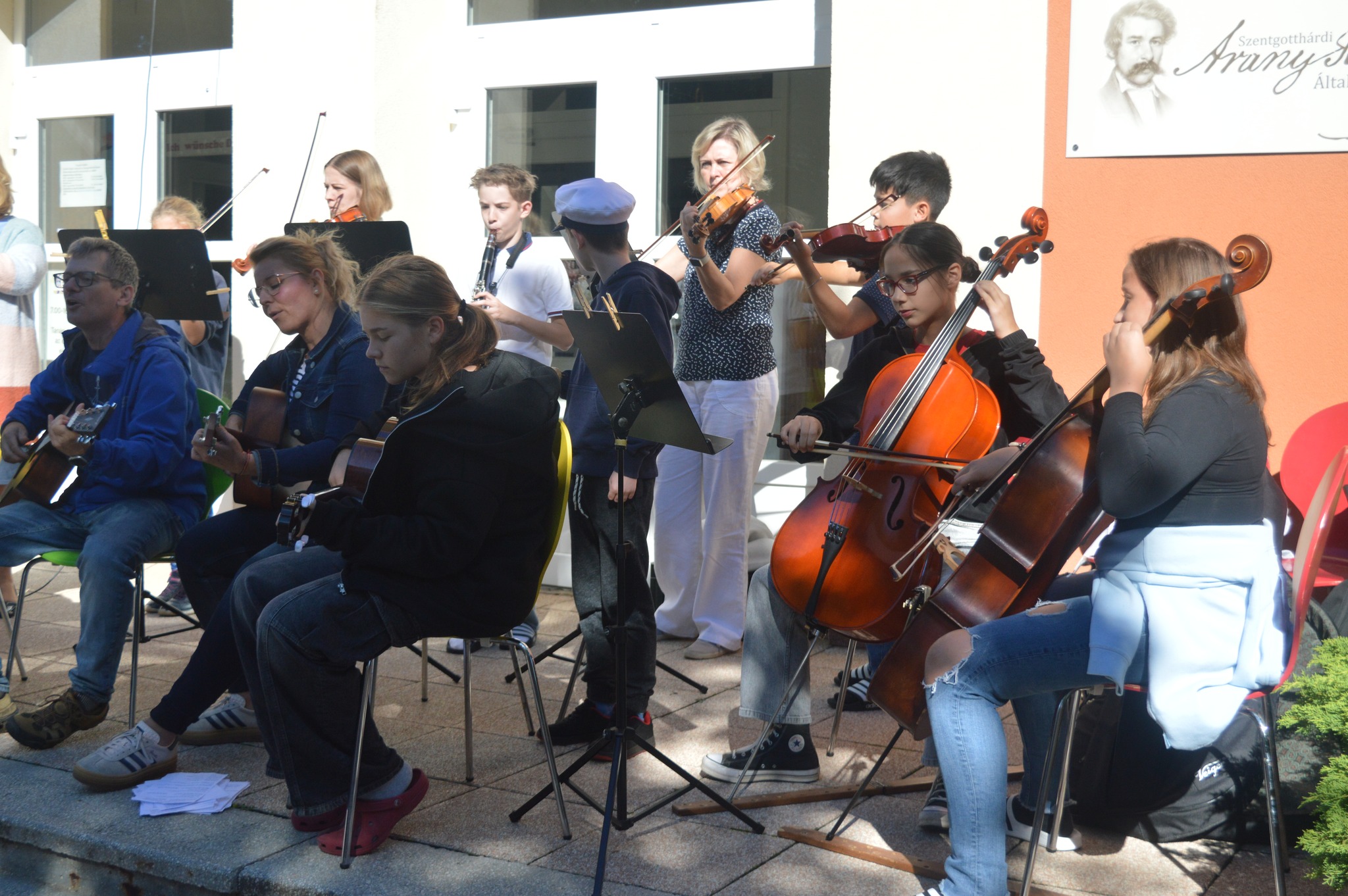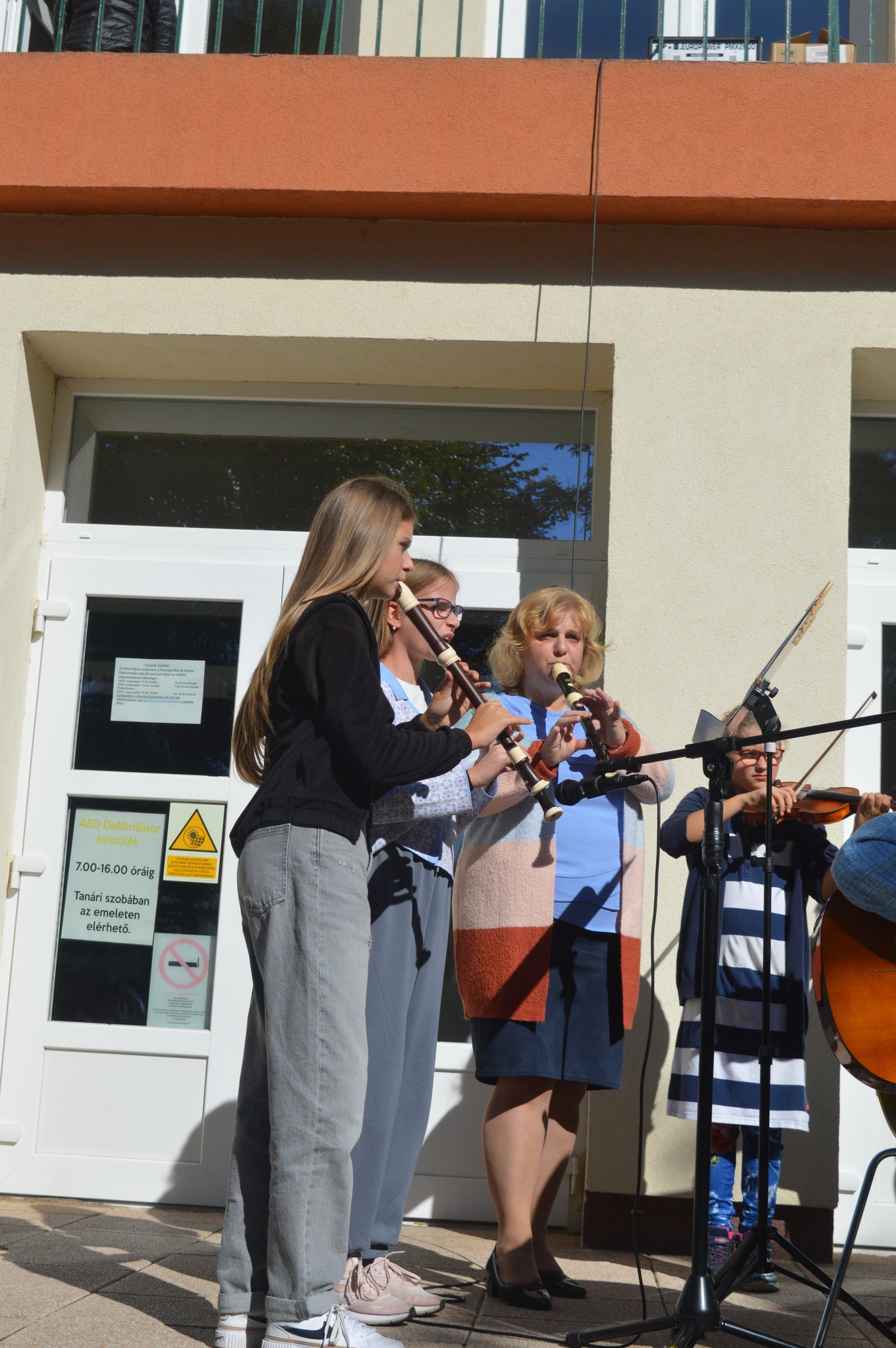 Zeneiskolába járó tanulóink jelentkeztek, hogy hangszereikkel kísérnék a dalt, így a végén furulyák, csellók, hegedű, klarinét, gitárok színesítették a közös éneklést. Köszönet a Takács Jenő Zeneiskola tanárainak a felkészítésért, segítségért!